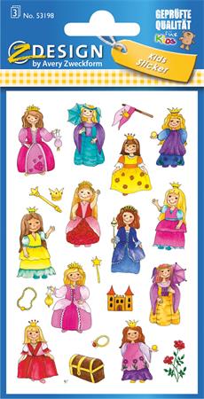 Matrica, papír, 3 ív, 76x120 mm, AVERY ZWECKFORM, "Z-Design No.53198", királylány