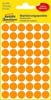 KezdőlapIrodaszerekIrodai papíráruEtikettekEtikett, 12 mm, kör, AVERY ZWECKFORM, neon narancs, 270 etikett/csomag