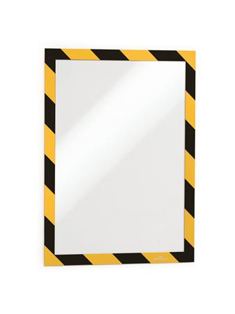 Infokeret, A4, öntapadó háttal, DURABLE "DURAFRAME SECURITY", sárga-fekete